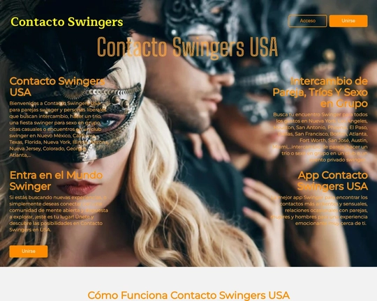 | Summary: Contacto Swingers USA🍍Contactos Swinger USA para parejas swinger y personas liberales que buscan hacer un trío, intercambio de pareja o sexo en grupo en Nuevo México, California, Texas, Florida, Nueva York, Illinois, Arizona, Nueva Jersey, Colorado, Georgia, Atlanta,...Encuentra parejas y solteros que quieren intercambiar pareja para relaciones sexuales o tener sexo en grupo. Desde el Soft Swap hasta el Full Swap en fiestas swinger, exhibicionismo y voyeurismo, citas swinger, juegos de rol, sexo en lugares públicos en el mejor ambiente swinger. Contacto Swinger USA, parejas liberales, tríos, sexo en grupo, intercambio de pareja, parejas swinger, singles, relaciones sexuales, soft swap, full swap, fiestas swinger, exhibicionismo, sexo en lugares públicos, swinger party,, sexo ocasional, citas swinger, ambiente swinger, Nueva York, Los Ángeles, Houston, San Antonio, Phoenix, El Paso, Dallas, San Francisco, Boston, Atlanta, Fort Worth, San José, Austin, Miami,... | 5.0 |
